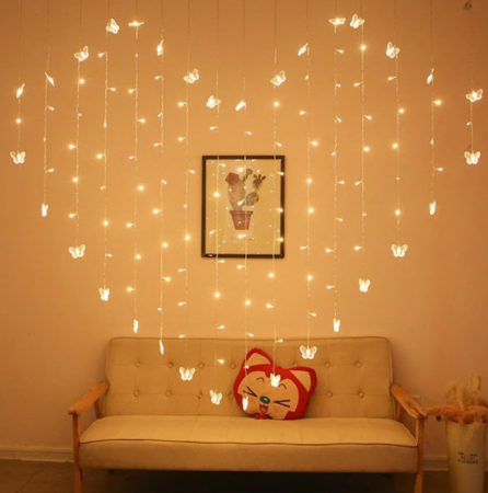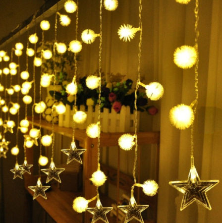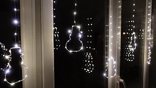 • Perdele luminoase de 3 metri cu globuri, reni, oameni de zăpadă, stele, Moș Crăciun sau brăduți, perfecte pentru ferestre, pereți sau balcoane.