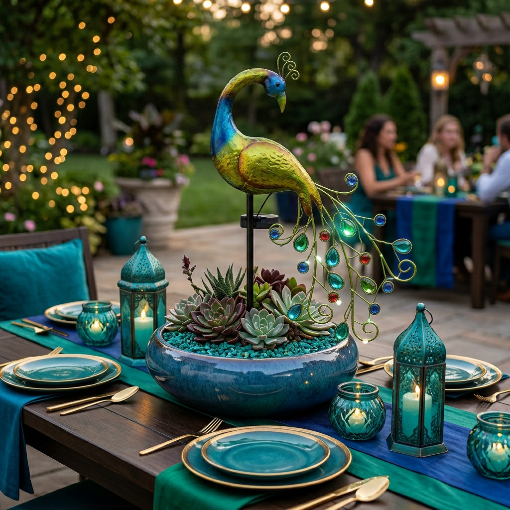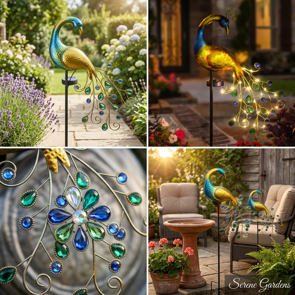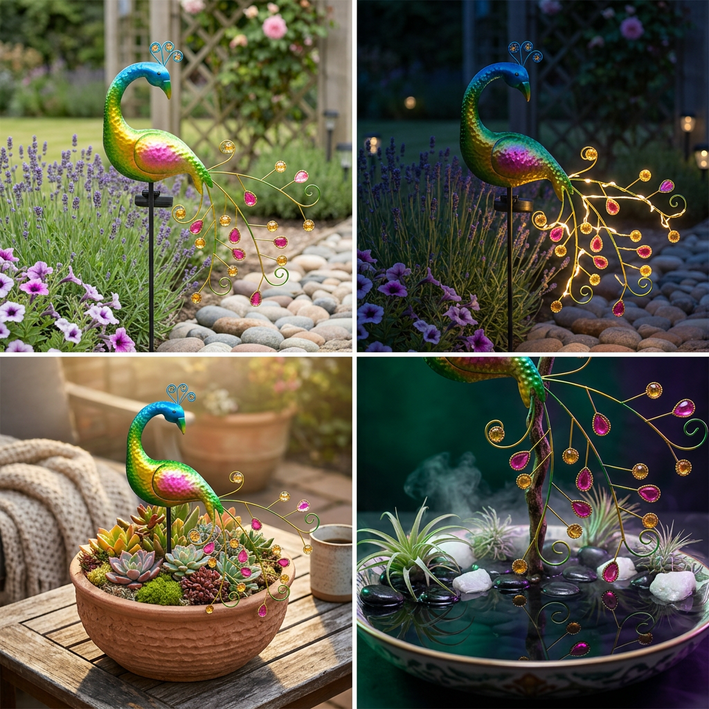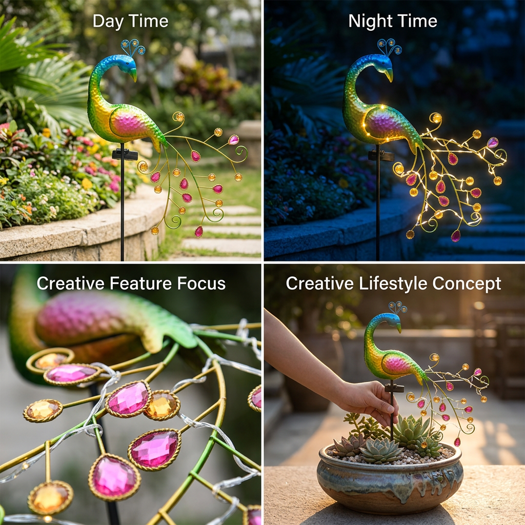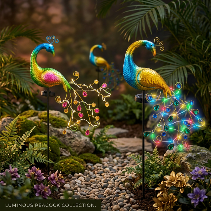 Adauga un plus de eleganta si rafinament gradinii tale cu lampa solara decorativa model Paun, un element spectaculos care imbina designul artistic cu iluminarea ambientala. 🌙✨